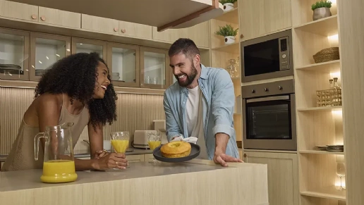 - Convivência facilitada: a integração dos ambientes permite que cozinhar e socializar aconteçam simultaneamente, tornando o preparo das refeições mais participativo e conectado com familiares ou convidados.